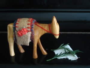 Triumphal Entry/ Palm Sunday: Donkeys are hard to find. All I can say is, keep looking. Coats and palm tree branches and stones can be added to the donkey, or used without a donkey. Cut silk leaves to look like palm branches (I used bamboo leaves here), and cut cloth into coat shapes.