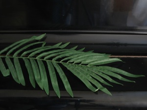 Palm branches, occasionally sold at hundred yen stores, can be used in a lot of different ways. They can be used as simple centerpieces, or add silk flowers and ribbons or candles or crosses for decorations all over the house or church.