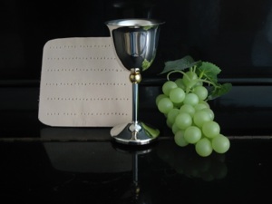 Plastic grapes (to represent wine) are sometimes sold at dollar stores. Any cup will do, since a goblet is really just a symbol, not what Jesus and his disciples actually used.