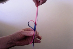 Pull the 2 inside strips so the inside loops are smaller than the outside loops.