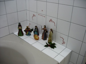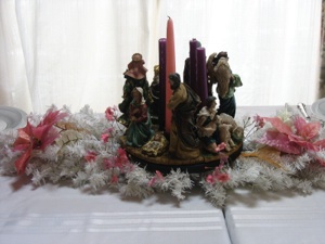 Since the advent wreath came in 4 sections, I was able to arrange it as if it were a regular nativity set. One year I put it next to the small Christmas trees in my son’s room.