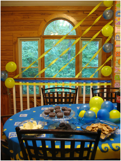 Decorations: These instantly make it feel like a party, but they are not essential--so skip them, or at least keep them simple, cheap, and quick. The balloons cost $2 and the streamers were free since they were left over from another party. Buying them would only add another $2 to the total.