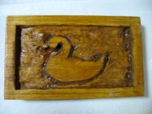 Wooden bas relief of a swan carved by a 7 year old.