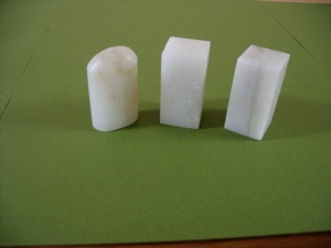 2.plaster of paris that has been mixed with vermiculite (the sparkly stuff that is used in potting soil.) They will feel like they are carving “real” stone. Follow package instructions. Pour into molds such as milk cartons, till set. Tear off the molds and carve.