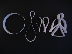 1.Cut 2 strips of paper 8 1/2 in x 3/4 in. (21x2 cm.) These measurements don’t have to be exact.