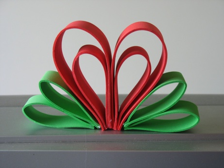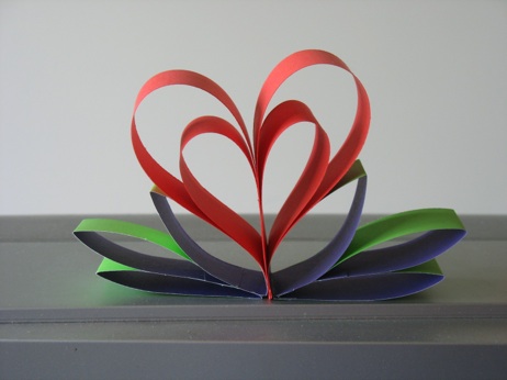 Make the heart stand up by adding 3 leaves on each side. Make the leaves by making rings out of green paper, then fold flat.