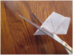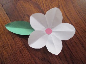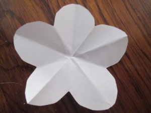Open the folded paper to reveal a 5 petal flower. If you want a smaller flower, refold the flower and cut the petals again a little shorter.
