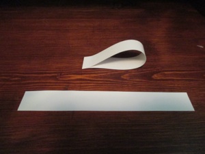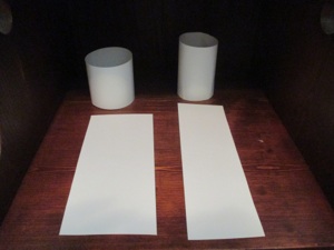 To make the cups, cut strips of paper out of stiff paper, such as card stock or poster board. The tall cups are 4 x 8 1/2 inches, the shorter ones are 3 x 10 inches. Glue the ends together to form cylinders.