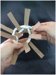 It doesn’t really matter if the cut strips are different widths, or if they are a bit crooked. If you are worried the kids won’t cut the right number of strips, you can draw lines on the tubes as guidelines, or cut them all yourself ahead of time. If you want to make guidelines for a lot of kids, wrap a piece of paper around one tube, draw the lines, take the paper off the tube, photocopy it, and tape those photocopies to the tubes. Once the kids have cut the tubes, the paper can be removed.