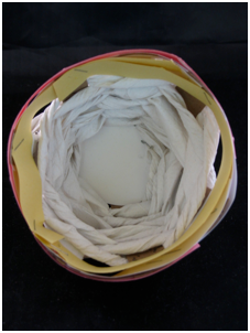Weave yarn, paper towel strips, or nylon “rope” onto the toilet paper tube frame. Note: If you use yarn, try to get the fattest yarn you can afford, because thin yarn is going to take a long time to weave. Another option is that cheap nylon “rope” (not twisted, though) that is used for tying packages or bundles of newspaper. It is cheap, strong, and comes in pastel colors as well as white. See how to make the paper towel strips in the photos below.