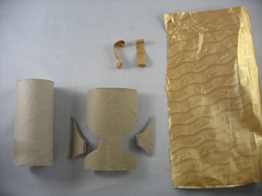 3.Cover the trophy with gold foil (chocolate bar wrapper) or tinfoil. Cut the foil 1-2 inches longer than the toilet paper tube on both ends.