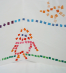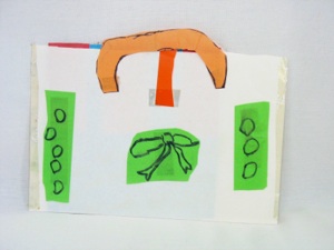 Mosaic card: Cut small squares of various colors of paper and show your child how to glue a small area with glue stick, then affix the squares to form a picture. Another way to glue them on would be to dip a q-tip in glue, and dab it on the paper, then put the colored square on the glue.