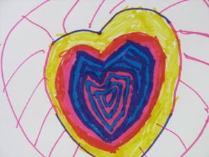Concentric hearts: Draw a heart with marker, then draw smaller and smaller hearts inside, alternating different colors.