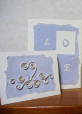Paper cut-out card : Cut hearts or letters to spell words such as “Love.” Arrange them then glue to cards. The tall card has the opening in the middle instead of on the right side. The hearts are glued to just one side or the other to form sort of latch for the card. Younger children can make similar designs with sticker hearts and words--all they have to do is stick them on.
