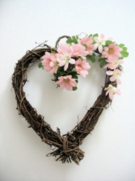 Here is an alternative for a wreath--make or buy a twig frame and add a big red bow and a heart (this one is made from a light weight modeling compound such as Hearty (Karui Kaminendo.)