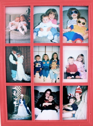The other frame had 9 spaces to fill, so I found pictures of my children with each other at different ages, and put them in the frame to remind them of what good friends they had been to each other over the years.