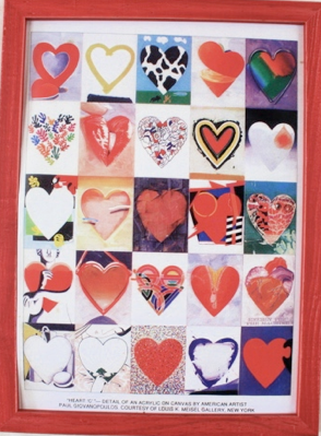 When I found these red frames at a hundred yen store, I knew they would make great Valentine decorations. For the frame on the left, I wanted to use this magazine cover with lots of hearts, but the cover was too small. So I color copied it and enlarged it to fit the A3 sized frame.