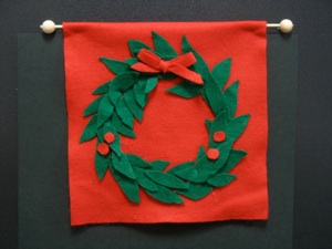 3、このリースは、窓かクリスマスツリーに飾ったり、また後にピンをつけてブローチにしたり、マグネットをのりずけして冷蔵庫に飾ったりするとよいでしょう。