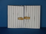 金具でバーをカードにとめます。これでバーは上がったり下がったりできるし、カードに留められているのでとれません。