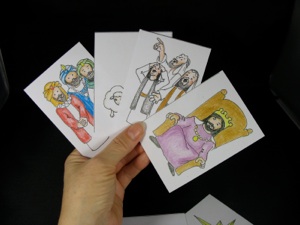 神殿や鳩、杖や贈り物は残しておきます。(これらはクリスマスカードゲームに使えます。12のアイデアを参照してください。)それ以外のフィギュアを切り取ります。