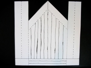1、馬小屋を茶色の紙にプリントアウトします。ここでは見易いように白い紙を使っています。