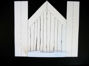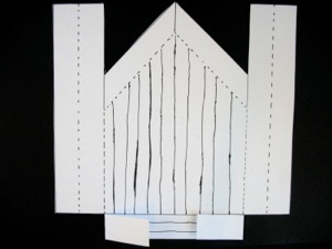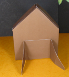 12、支えを点線で折り、馬小屋の後ろ面に貼り付けます。