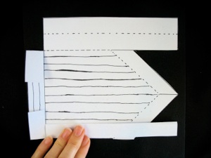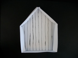7、屋根と横壁の実線を左右とも切り離し、横壁をそれぞれその部分で折ります。