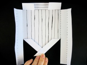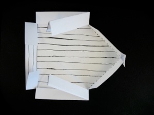 6、その部分を後ろの壁に向かってもう一度折り、戻します。もう片方も同様にします。