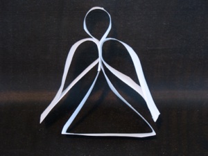 7、オプション:長めにカットした紙を糊かホチキスで止めて輪を作り、その真ん中に天使をつるしてもいいでしょう。