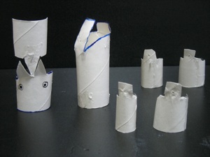 4本のトイレットペーパーの芯に灰色の紙を両面テープ(100円ショップで入手可能)で接着します。