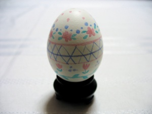 伝統的なウクライナのイースターエッグはキスカにろうをひとすくいし、ろうそくの上でそのろうを溶かしキスカで卵にデザインを描いて作ります。卵は一番明るい色の染料液に浸しもう一層のろうを上にかける。このプロセスは最後の染料液が黒くなるまで続きます。最後にろうは全部卵から溶けて落ち、複雑なデザインが現れます。私の娘達は中学生の時にこれらの卵を作りました。これは特別な道具、ろう、染料液を買わなくてはならない一つのテクニックです。
