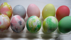 *プラスチックの卵、ゆで卵のデコレーション絵の具他、卵形チョコレート詰め合わせ等