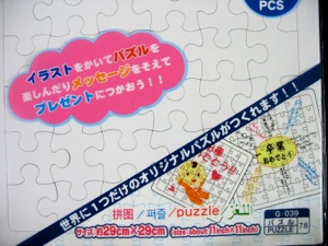 代用として:薄い厚紙のシリアルの箱のようなものを利用しその内側に手紙を書く。模様のある外側にあなたの写真か絵をのりではる。パズルのピースに切る。