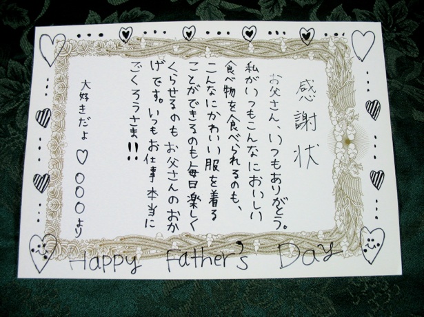 2.あなたのお父さんが『ベストフアーザー』コンテストで優勝したかのように証明書を書く。もし何を書いたら良いか思いつかなければ、お店売られているカードを見てヒントを得て下さい。
