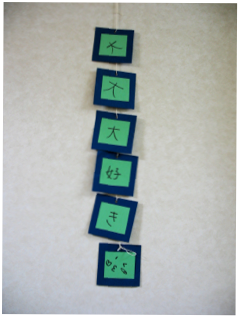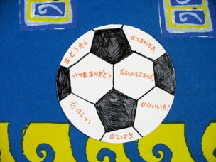 2. 厚紙に紙をのりではって、メッセージを書く。