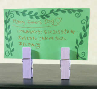 3. カードに洗濯バサミをはさんでお父さんが見つけるような所へ置いておく.
