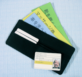 Note:もし財布を折り曲げた時閉じたままにしたければ、外側よりも内側の紙を短く切る。しかし同じサイズにするほうが楽だし自然にうまく立ちます。