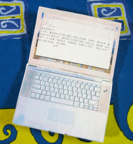 5.角の紙に切り込みを入れきれいにパソコンの内側のほうに折りのり付けして乾かす。