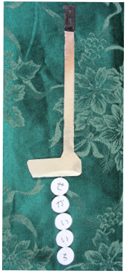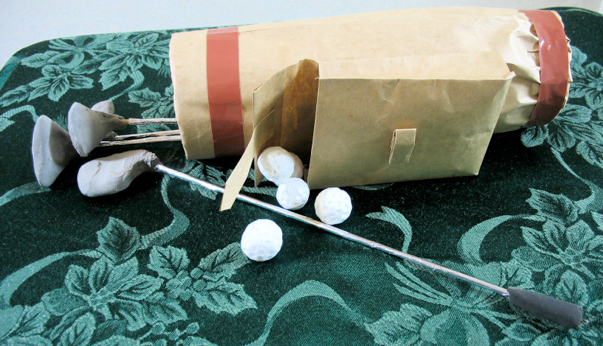 1. 薄い厚紙からゴルフのクラブとボールを切り取る。