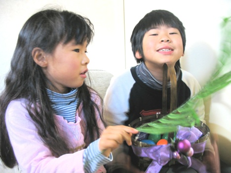 イースターの最後を飾るイベントがありませんでしたので子供たちにイースターバスケットをあげようと決めました。聖書のおはなしの本やDVD、CD,ゲームやアクセサリ-など子供たちの成長の助けになるものをバスケットに入れてこのイースターいう機会をもちいてプレゼントすることはいいことだと思います。
