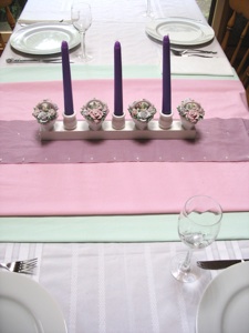 この3本のろうそく立ては「三位一体」、「三本の十字架」そして「イエス様が死から三日目によみがえられた」ことを表します。キャンドルの色は、イースターのシーズンに紫、受難日に黒、そして復活の日曜日に白というように色を変えていきます。