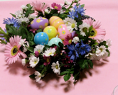 お手軽な方法その2: 壁掛け用のリースをテーブルセンターに置きます。リースの真ん中にはプラスチックの卵を置き、プラスチックの卵の中にはナッツやキャンディーなどを入れておき、デザートに食べても良いでしょう。