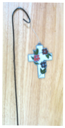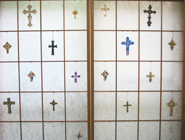 十字架の飾りは、キリスト教書店で売っていますのでそこから買い探しを始めるのもいいかもしれませんが、一般的にキリスト教書店は値段的には高めです。 アメリカでは時々、比較的安価の十字架がクリスマスツリーの飾りと一緒に売られていたり、クラフトショップでは結構多くの違ったデザインの十字架が売られています。「マイケルズ」というクラフトショップには、5種類程の違った木製の種類や、表面が樹脂加工されている十字架などがおかれていました。(サウスキャロライナ州の話しですが)「ホビーロビー」というお店には、たくさんの出来上がった十字架の飾り物があります。特売日に行くと大特価で買えることもあります。私自身十字架の飾りは日本の100円ショップでもよく見つけます。ガーデンコーナーには木製のものがあり、ハローウイーンの季節にはセラミックの十字架、またアクセサリーコーナーでいくつか見つけたこともあります。