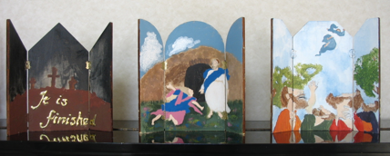 トリプティク(三つ折の板)にイースターのシーンを描く