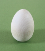 これは割れる心配がありません。そしてあなたが話すまで、誰もこれがにせものの卵だとは思わないでしょう。左側のものは私がアメリカのクラフトストアで入手したものです。また、100円ショップでは、卵型の小物入れを入手しました。色々探してみてくださいね。いくつかのお店では、多量に買う場合、その注文を受け付けてくれるところもあります。