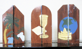 イエス様の最後の一週間を表す作品を彫って作り、それをイースターデコレーションとして使います。(下の写真参照)