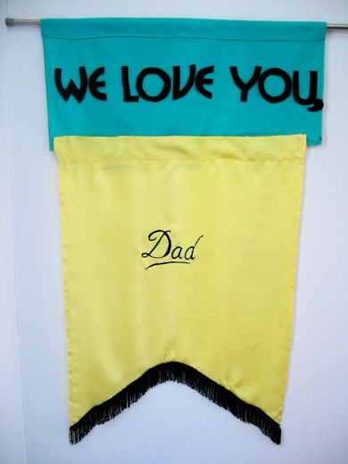 This banner has 2 parts--the green portion has “Happy Birthday” on the reverse side, so the yellow banner can be used for used for any occasion, simply by changing the message at the top. If banners are made out of felt, you don’t even have to sew them--just glue a seam for the dowel, and decorate with fabric paint. I made a banner for each of our children that I hung on their birthdays and other special days. I also made this one for my husband (in his favorite color, of course ) since he has a birthday and Father’s Day,