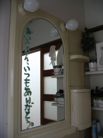 Write a message on the mirror with soap or lipstick, or whiteboard marker, or window chalk.