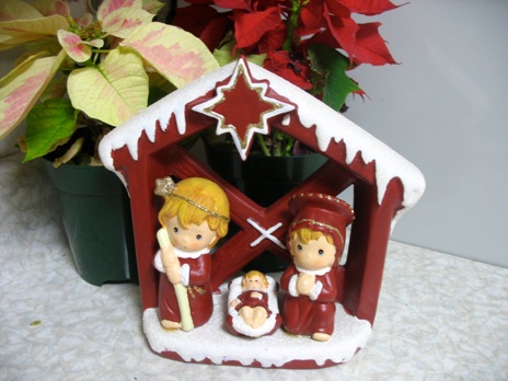 この小さなネイティビティの人形は台所のカウンターに置いていますが、浴室でも使えます。セラミックなので、たった2,3百円でケイオーD2ホームセンターで買いました。