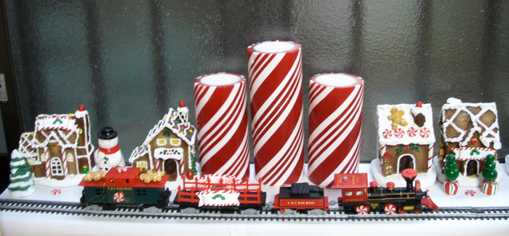 このジンジャーブレッドの村は食べられませんが見るだけで楽しいです。家と汽車は一ドルストアーで買い手工芸品店で買ったキャンディーとジンジャーブレッドの人間で飾りました。もしあなたが作りたいなら段ボール箱で同じような村を作り、軽い紙粘土で作る装飾で飾れます。